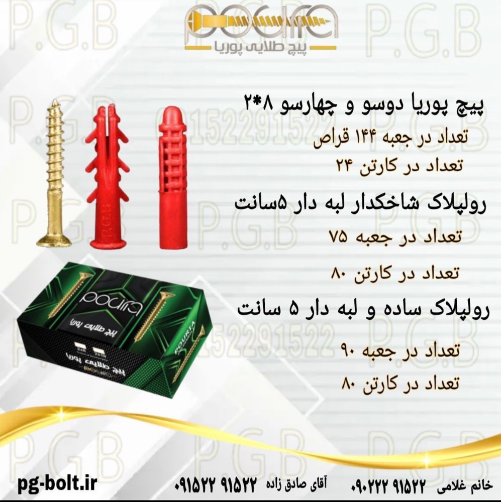 پیچ طلایی پوریا با ارائه محصولات متنوع،با بهترین قیمت و کیفیت در خدمت شما همکاران گرامی میباشد.